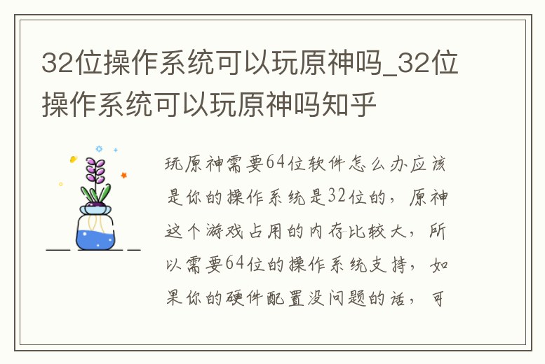 32位操作系統可以玩原神嗎_32位操作系統可以玩原神嗎知乎