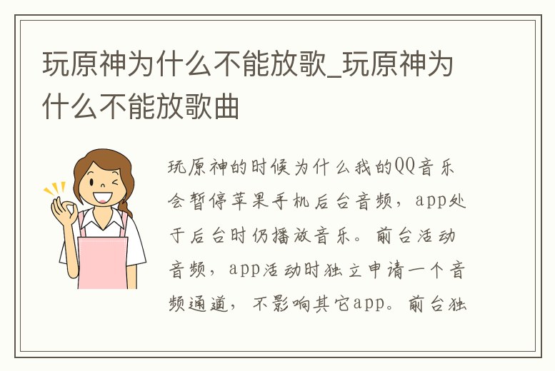 玩原神為什么不能放歌_玩原神為什么不能放歌曲