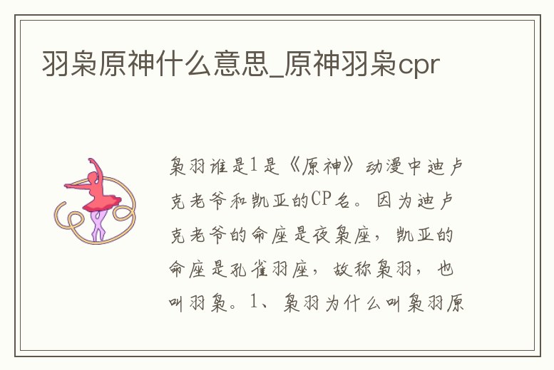 是《原神》動漫中迪盧克老爺和凱亞的CP名。因為迪盧克老爺?shù)拿且箺n座,凱亞的命座是孔雀羽座,故稱梟羽,也叫羽梟。