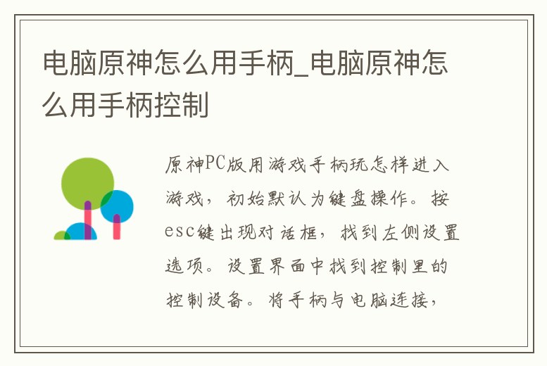 電腦原神怎么用手柄_電腦原神怎么用手柄控制