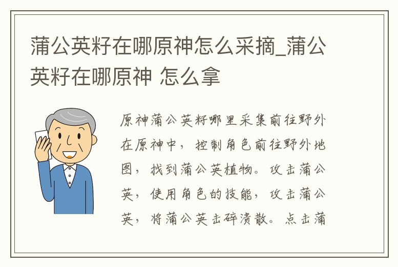 蒲公英籽在哪原神怎么采摘_蒲公英籽在哪原神 怎么拿