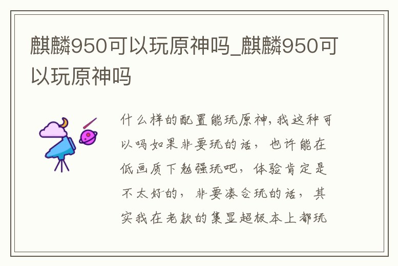 麒麟950可以玩原神嗎_麒麟950可以玩原神嗎