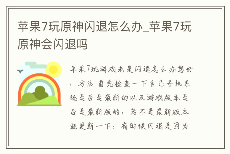 蘋果7玩原神閃退怎么辦_蘋果7玩原神會閃退嗎
