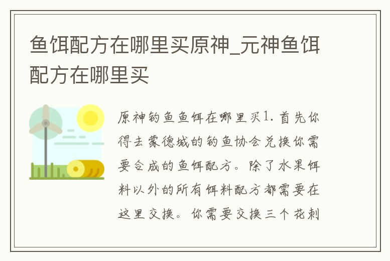 魚餌配方在哪里買原神_元神魚餌配方在哪里買