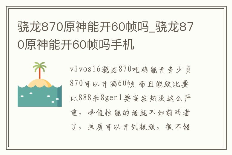 驍龍870原神能開60幀嗎_驍龍870原神能開60幀嗎手機(jī)