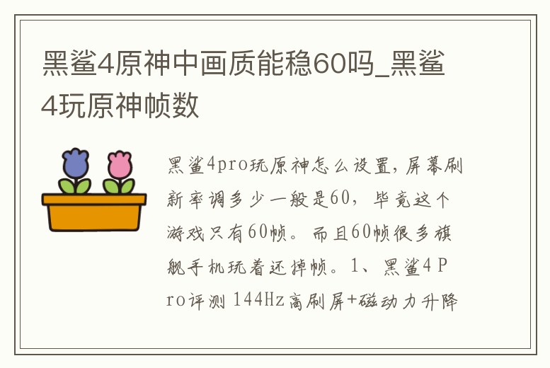 黑鯊4原神中畫質能穩60嗎_黑鯊4玩原神幀數