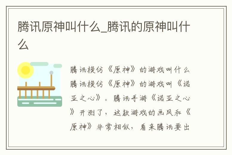 騰訊模仿《原神》的游戲叫《諾亞之心》。《諾亞之心 》是由祖龍娛樂研發,騰訊游戲代理發行的星球大世界探索手游,游戲中有球形無縫大地圖、探索擬真星球生態、無職業限定、幻靈加武器的自由戰斗體系。豐富多線的生活類玩法。