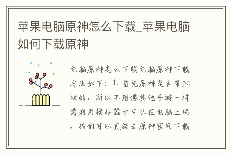 蘋果電腦原神怎么下載_蘋果電腦如何下載原神