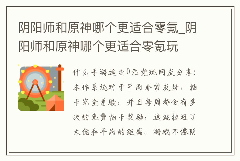 陰陽師和原神哪個更適合零氪_陰陽師和原神哪個更適合零氪玩