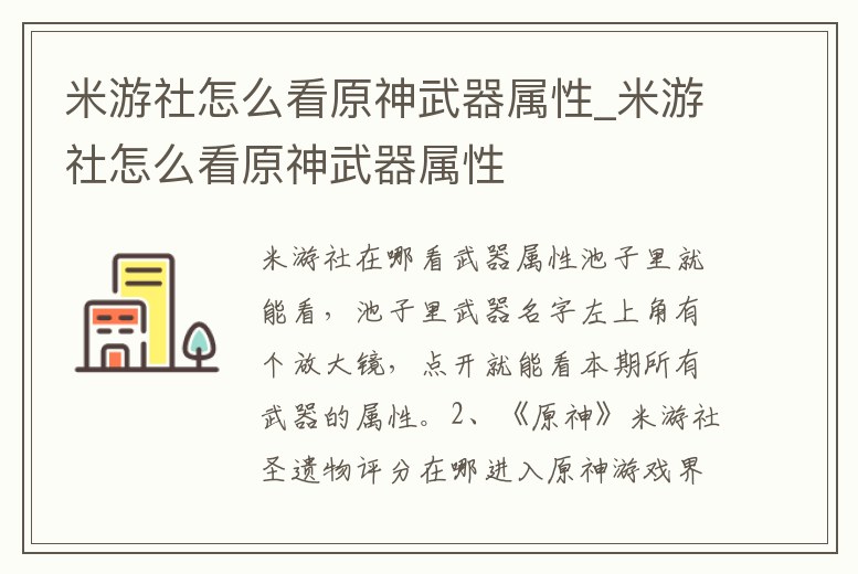 米游社怎么看原神武器屬性_米游社怎么看原神武器屬性