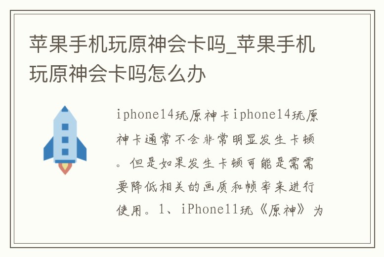 蘋果手機玩原神會卡嗎_蘋果手機玩原神會卡嗎怎么辦