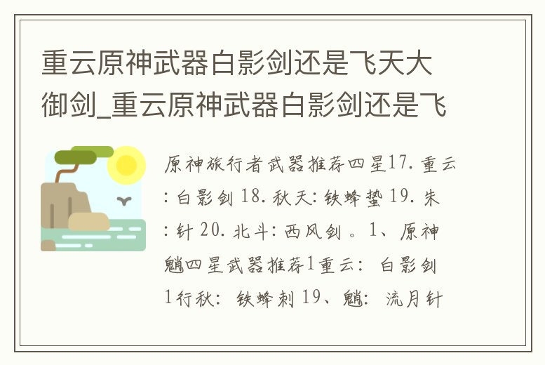 重云原神武器白影劍還是飛天大御劍_重云原神武器白影劍還是飛天大御劍