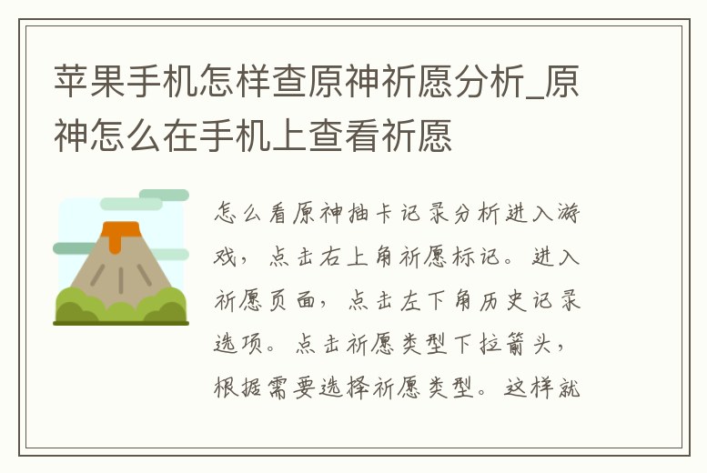 蘋果手機怎樣查原神祈愿分析_原神怎么在手機上查看祈愿