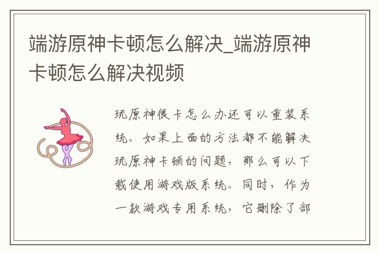 端游原神卡頓怎么解決_端游原神卡頓怎么解決視頻