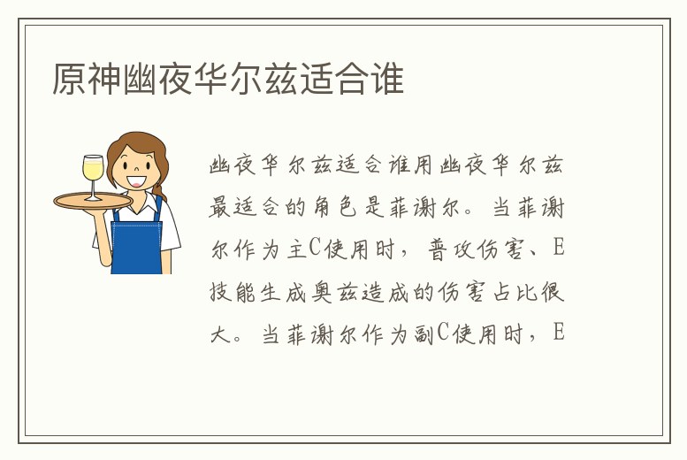幽夜華爾茲最適合的角色是菲謝爾。當菲謝爾作為主C使用時,普攻傷害、E技能生成奧茲造成的傷害占比很大。當菲謝爾作為副C使用時,E技能傷害占比很大。而幽夜華爾茲本身就能提高普擊、E技能傷害。菲謝爾和幽夜華爾茲能很好的搭配。