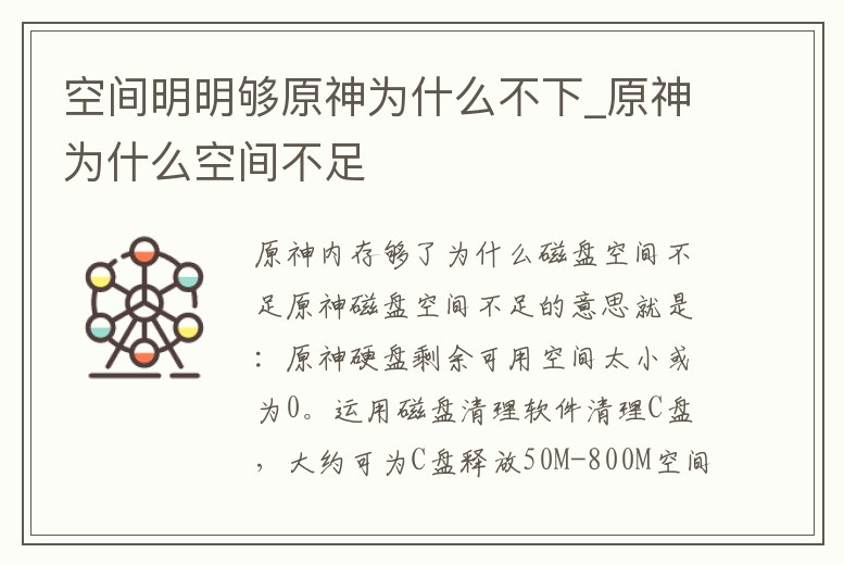 《原神》內存夠了,磁盤空間不足可能是因為硬盤剩余可用空間太小?!对瘛反疟P空間不足說明了硬盤剩余可用空間太小或為0。需要運用磁盤清理軟件清理C盤。盡管現在的硬盤普通都已以T記,但系統分區一般還是分得比較小的,電腦。