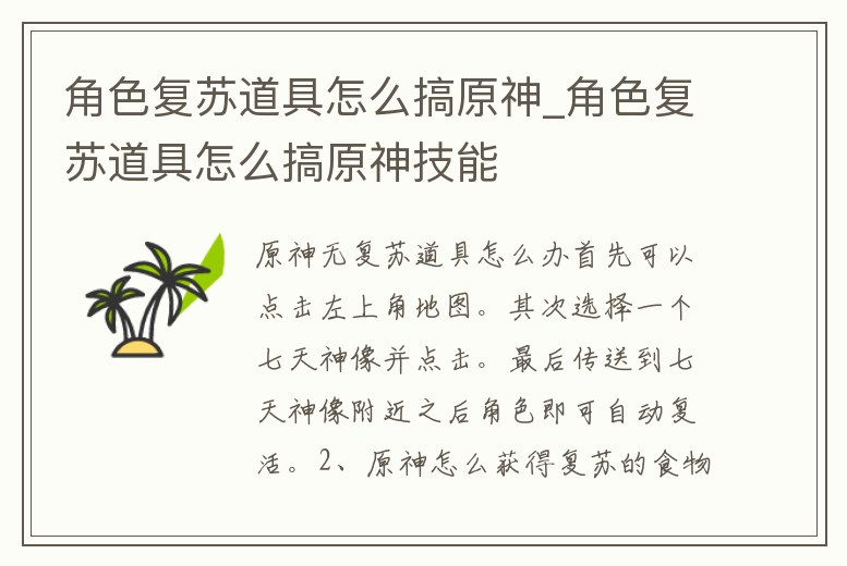 - 角色復(fù)蘇道具怎么搞原神_角色復(fù)蘇道具怎么搞原神技能