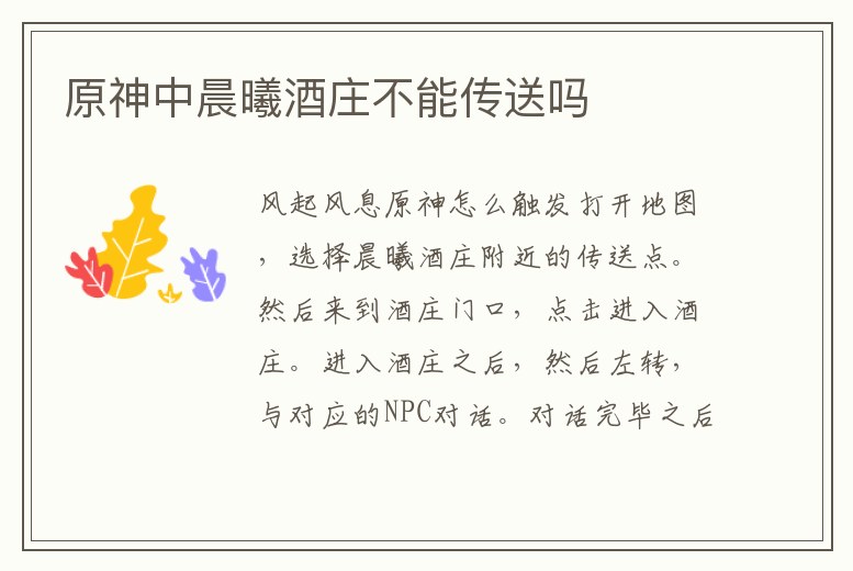 打開地圖,選擇晨曦酒莊附近的傳送點。然后來到酒莊門口,點擊進入酒莊。進入酒莊之后,然后左轉,與對應的NPC對話。對話完畢之后,就觸發了風起風息任務。
