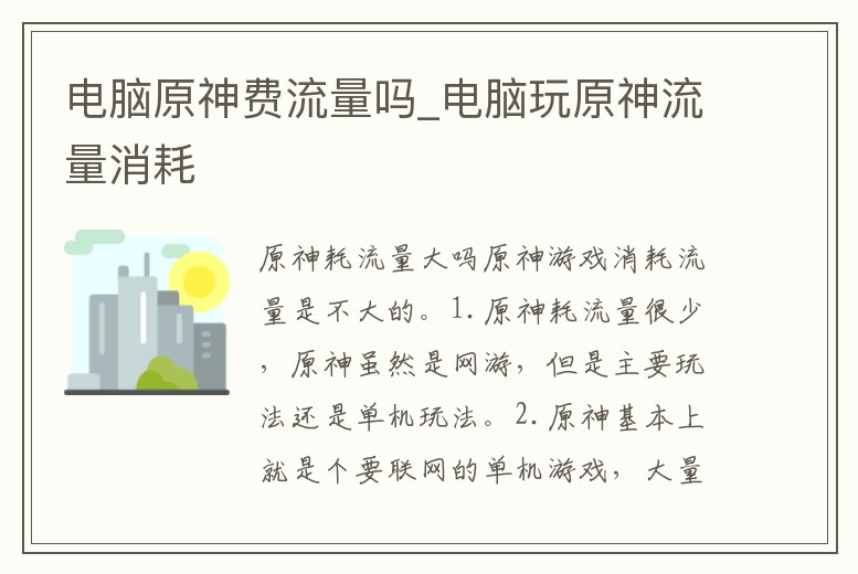 電腦原神費流量嗎_電腦玩原神流量消耗