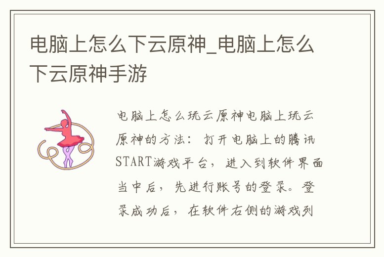 電腦上怎么下云原神_電腦上怎么下云原神手游