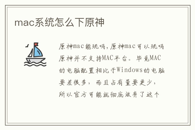 原神并不支持MAC平臺。畢竟MAC的電腦配置相比于Windows的電腦要差很多,而且占有量要更少,所以官方可能就徹底放棄了這個平臺,而且原神的配置雖然優(yōu)化很好,但是相比較于MACBOOK的集成顯卡,可能玩起來就會有很大的影響,而高配。
