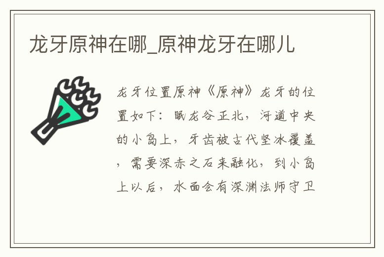 原神腐殖之牙龍牙位置有眠龍谷正北、眠龍谷西側、眠龍谷山洞內、雪山東南位置。眠龍谷正北:河道中央的小島上,牙齒被古代堅冰覆蓋,需要深赤之石來融化,到小島上以后,水面會有深淵法師守衛(wèi),建議先清理。眠龍谷西側。