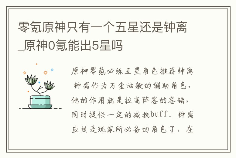 零氪原神只有一個(gè)五星還是鐘離_原神0氪能出5星嗎