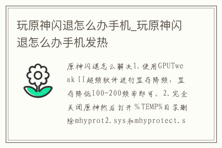 玩原神閃退怎么辦手機_玩原神閃退怎么辦手機發熱