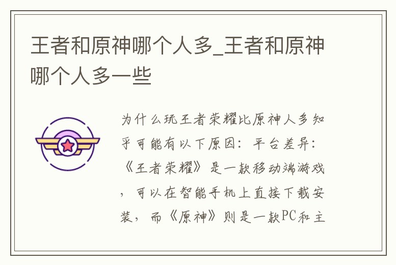 可能有以下原因:平臺差異:《王者榮耀》是一款移動端游戲,可以在智能手機(jī)上直接下載安裝,而《原神》則是一款PC和主機(jī)游戲,需要通過Steam或其他游戲平臺購買和下載。智能手機(jī)在全球范圍內(nèi)普及度更高,更容易吸引更多的玩家。