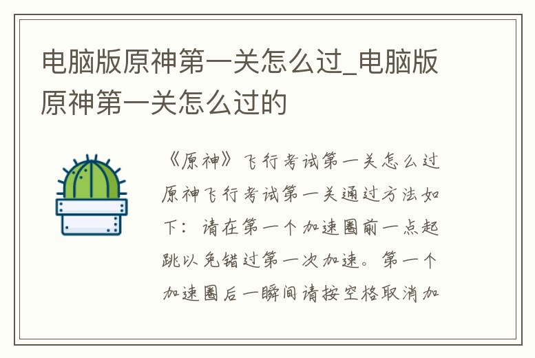 電腦版原神第一關(guān)怎么過_電腦版原神第一關(guān)怎么過的