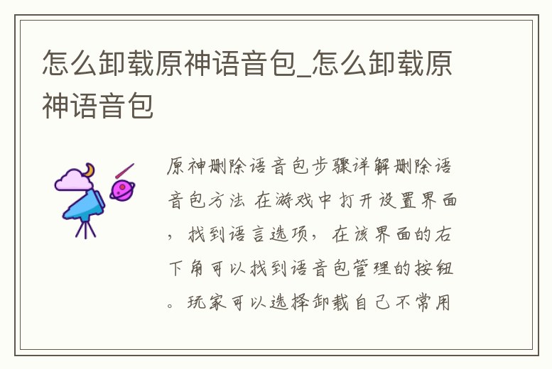 怎么卸載原神語音包_怎么卸載原神語音包