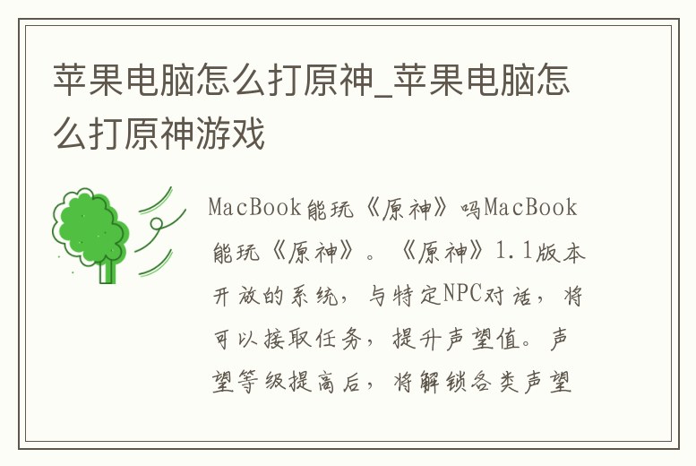 蘋果電腦怎么打原神_蘋果電腦怎么打原神游戲
