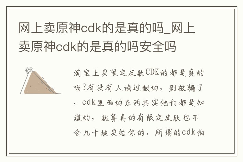 網(wǎng)上賣原神cdk的是真的嗎_網(wǎng)上賣原神cdk的是真的嗎安全嗎