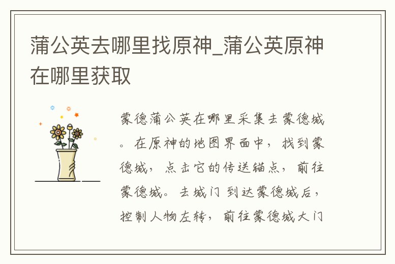蒲公英去哪里找原神_蒲公英原神在哪里獲取