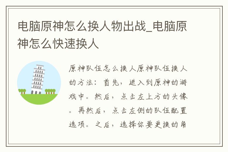 電腦原神怎么換人物出戰_電腦原神怎么快速換人