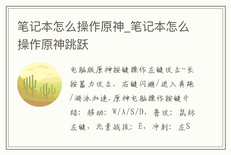筆記本怎么操作原神_筆記本怎么操作原神跳躍