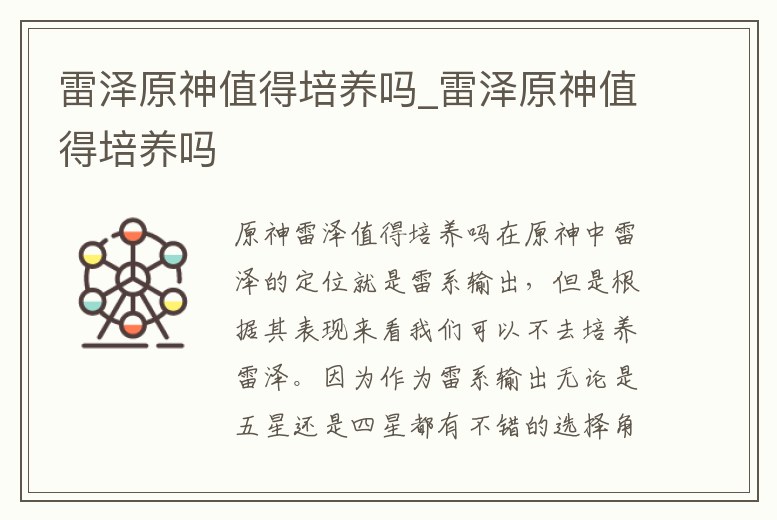 雷澤原神值得培養嗎_雷澤原神值得培養嗎