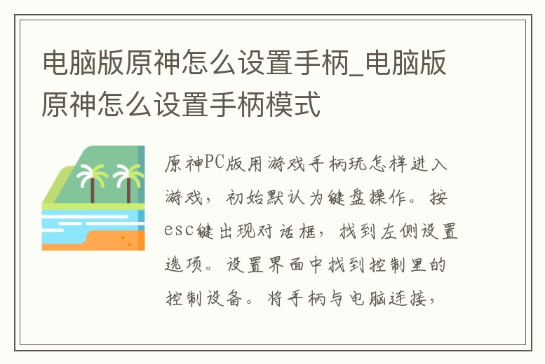 電腦版原神怎么設置手柄_電腦版原神怎么設置手柄模式