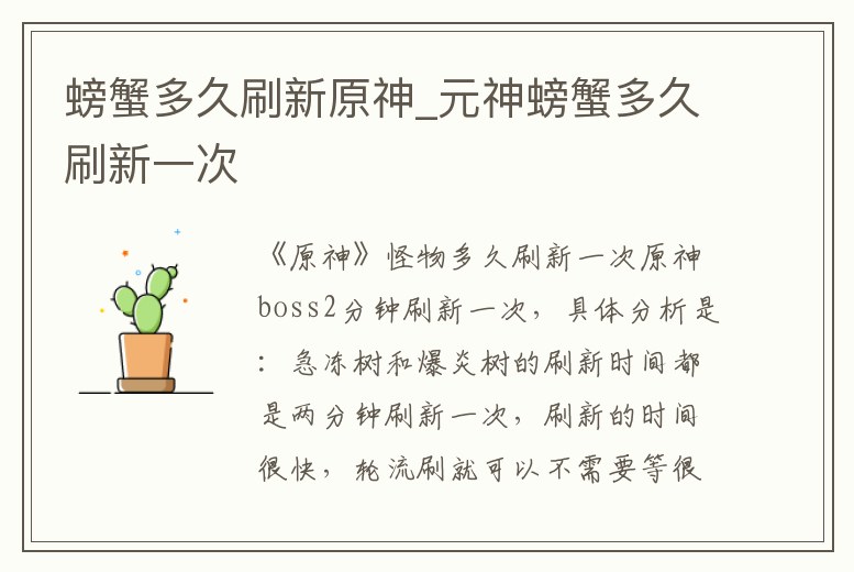 - 螃蟹多久刷新原神_元神螃蟹多久刷新一次