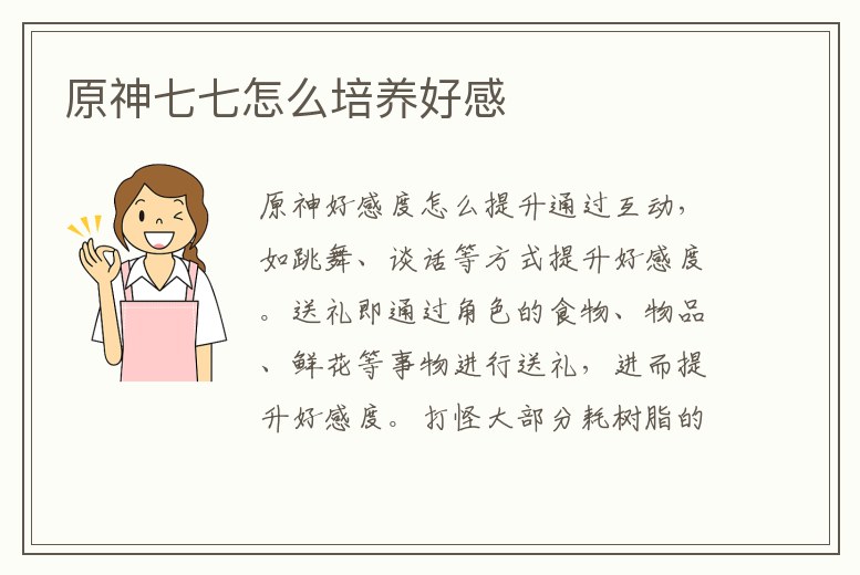 通過互動,如跳舞、談話等方式提升好感度。送禮 即通過角色的食物、物品、鮮花等事物進行送禮,進而提升好感度。打怪 大部分耗樹脂的怪物,打各種地脈/秘境/boss,從地脈和秘境來看是1:1的好感度提升比例。開寶。