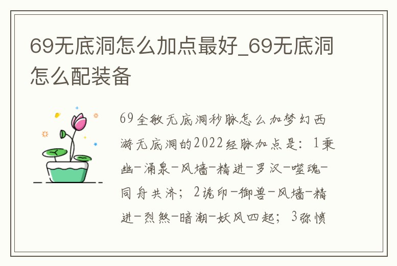 69無底洞怎么加點最好_69無底洞怎么配裝備