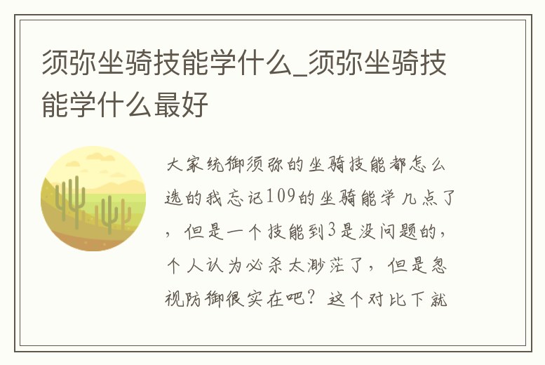 須彌坐騎技能學什么_須彌坐騎技能學什么最好