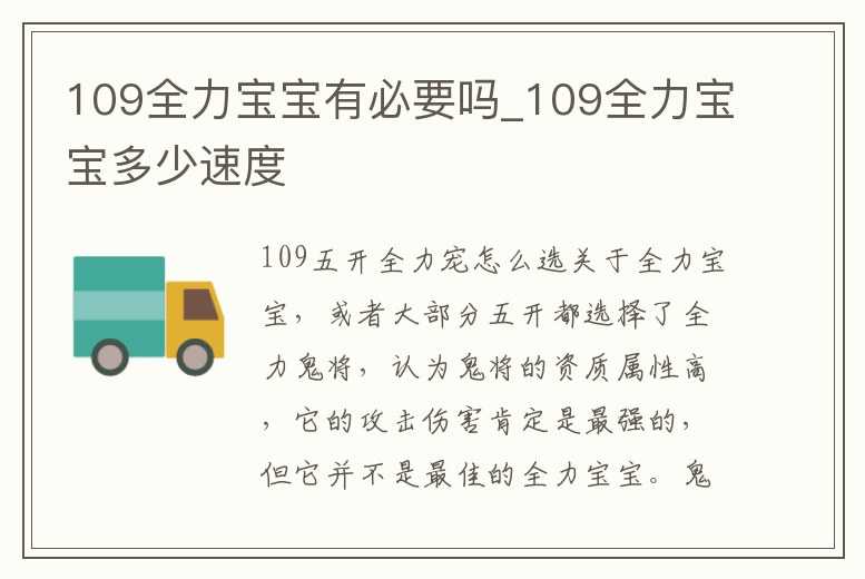 109全力寶寶有必要嗎_109全力寶寶多少速度