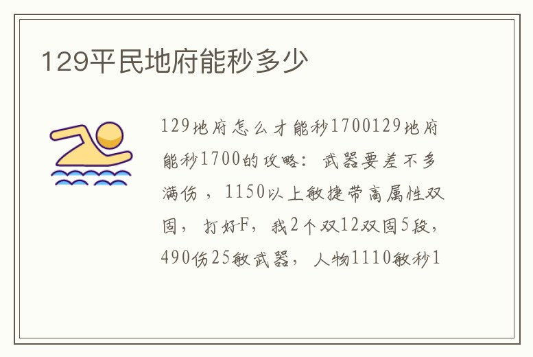 129地府能秒1700的攻略:武器要差不多滿傷 ,1150以上敏捷帶高屬性雙固,打好F,我2個雙12雙固5段,490傷25敏武器,人物1110敏秒1450無F。三固傷8段,活動腰帶,滿修滿暗器,動物套,極限高傷高敏武器衣服,高成長坐。