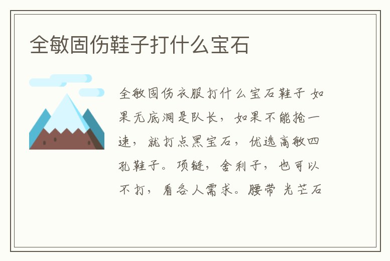 鞋子 如果無底洞是隊長,如果不能搶一速,就打點黑寶石,優選高敏四孔鞋子。項鏈,舍利子,也可以不打,看各人需求。腰帶 光芒石,光芒的效益最大。隊員鞋子不用上寶石。關于頭 很多人說打太陽石,增加傷害,但是我個人感。