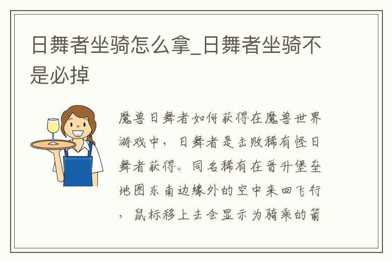 日舞者坐騎怎么拿_日舞者坐騎不是必掉