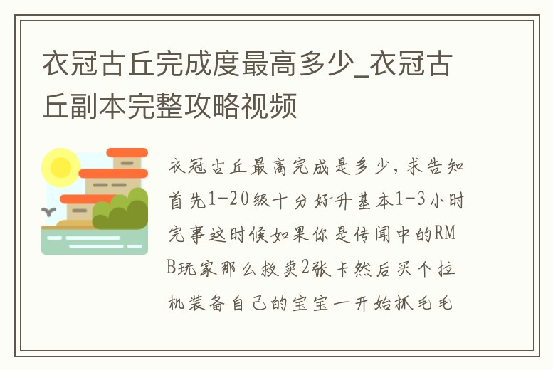 衣冠古丘完成度最高多少_衣冠古丘副本完整攻略視頻