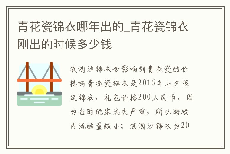 青花瓷錦衣哪年出的_青花瓷錦衣剛出的時候多少錢