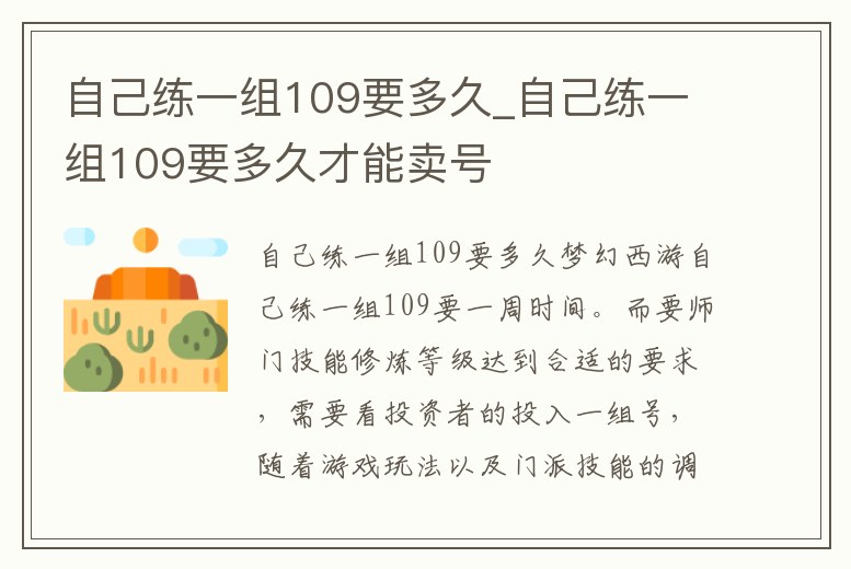 自己練一組109要多久_自己練一組109要多久才能賣號
