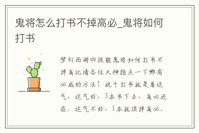 夢幻西游四技能鬼將如何打書不掉高比請各位大神指點一下